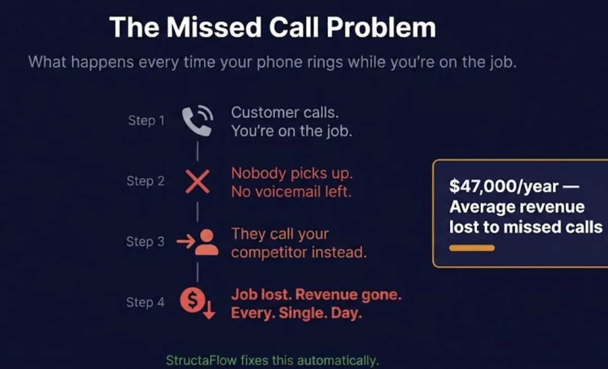 5 missed calls/month × $800 avg job = $4,000/month lost